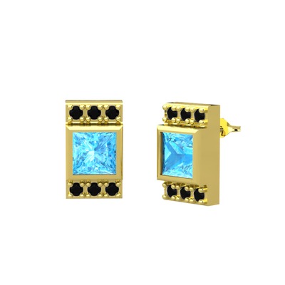 Akuamarin ve siyah zirkon 925 ayar altın kaplama gümüş küpe