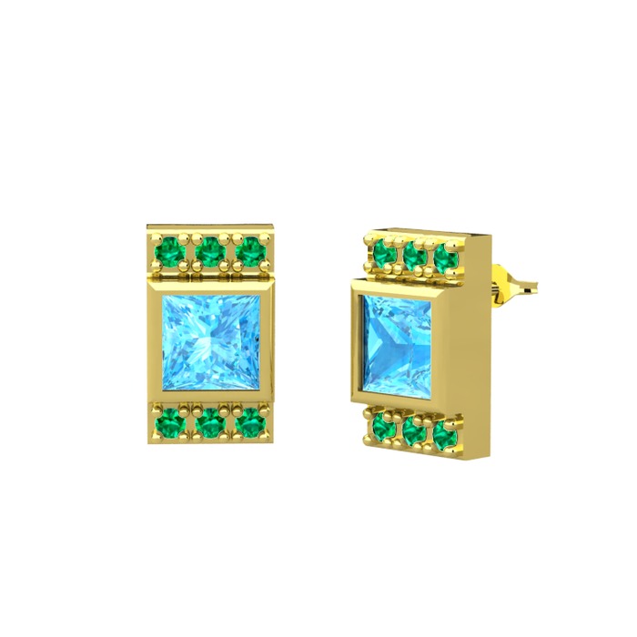 Akuamarin ve yeşil kuvars 18 ayar altın küpe