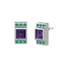Ametist ve kök zümrüt 8 ayar beyaz altın küpe