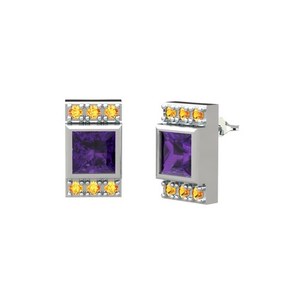 Ametist ve sitrin 14 ayar beyaz altın küpe