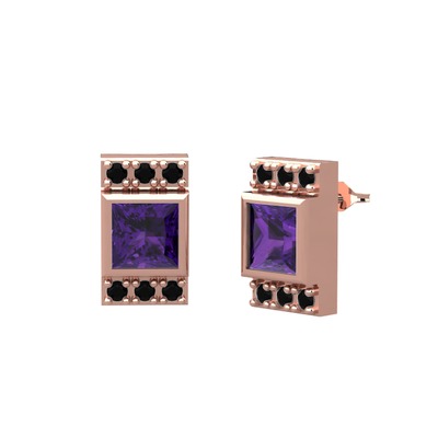 Ametist ve siyah zirkon 14 ayar rose altın küpe