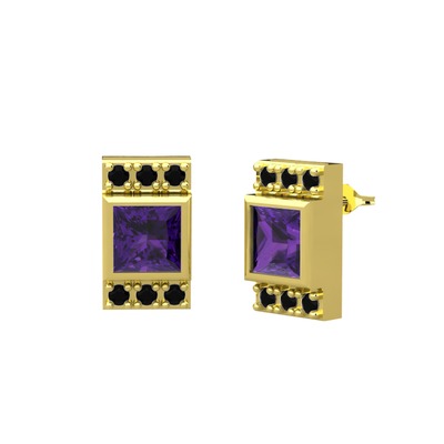 Ametist ve siyah zirkon 8 ayar altın küpe