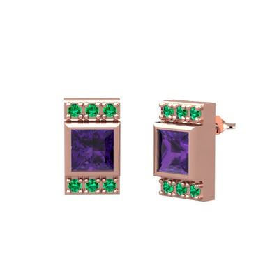 Ametist ve yeşil kuvars 14 ayar rose altın küpe