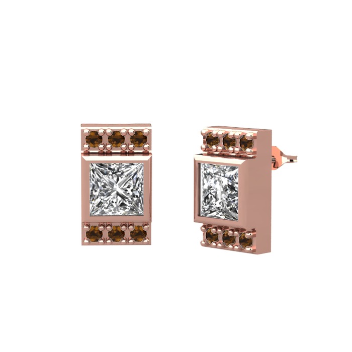 Beyaz zirkon ve dumanlı kuvars 18 ayar rose altın küpe