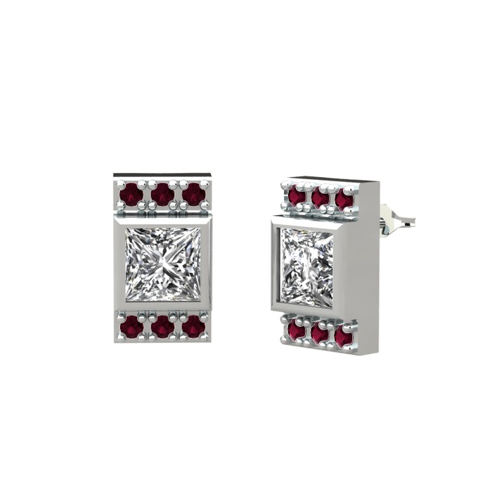 Beyaz zirkon ve kök yakut 925 ayar gümüş küpe