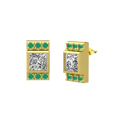 Beyaz zirkon ve kök zümrüt 8 ayar altın küpe