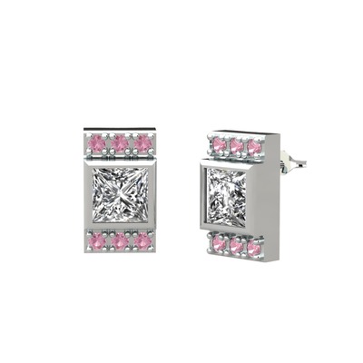 Beyaz zirkon ve pembe kuvars 8 ayar beyaz altın küpe