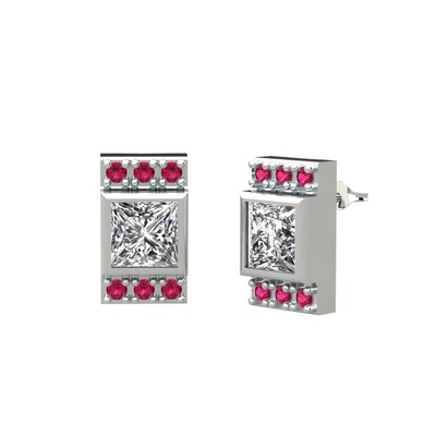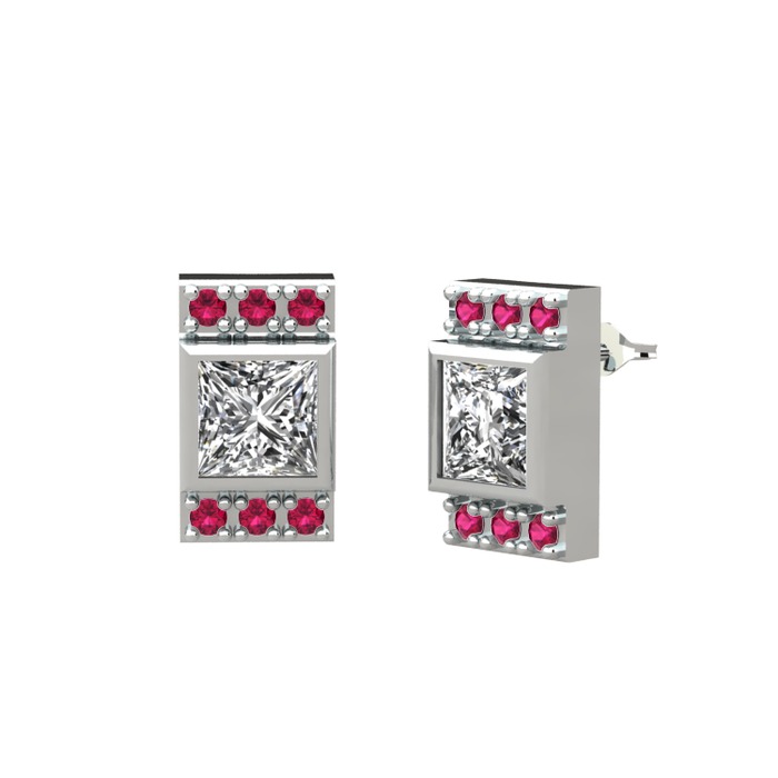 Beyaz zirkon ve rodolit garnet 14 ayar beyaz altın küpe