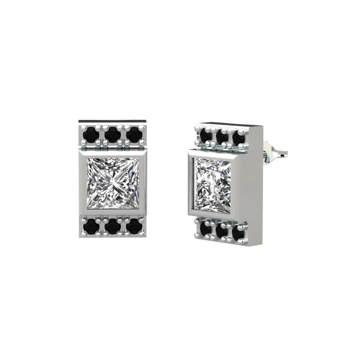 Beyaz zirkon ve siyah zirkon 18 ayar beyaz altın küpe