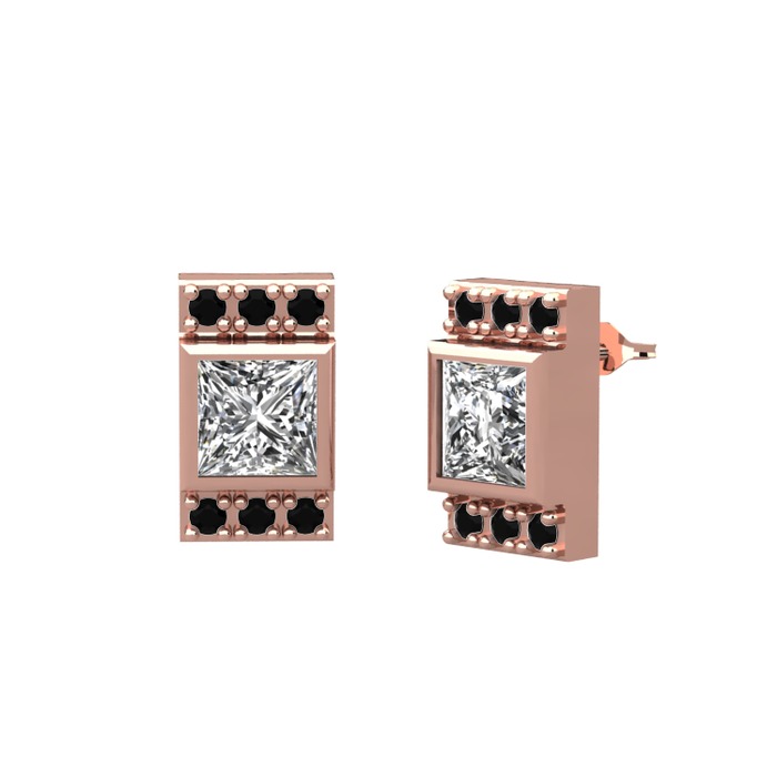 Beyaz zirkon ve siyah zirkon 925 ayar rose altın kaplama gümüş küpe
