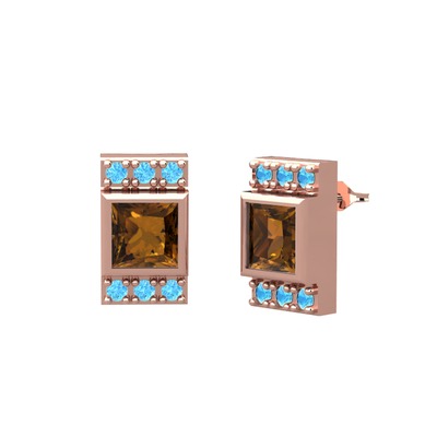 Dumanlı kuvars ve akuamarin 8 ayar rose altın küpe