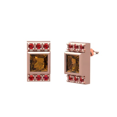 Dumanlı kuvars ve garnet 18 ayar rose altın küpe