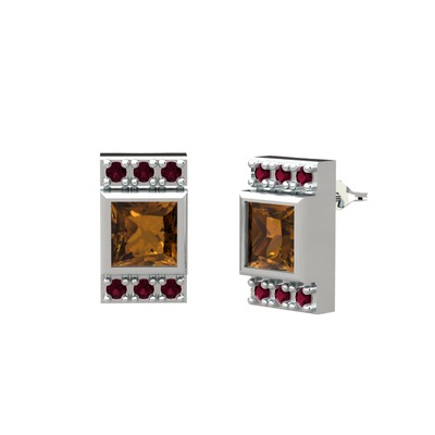 Dumanlı kuvars ve kök yakut 8 ayar beyaz altın küpe
