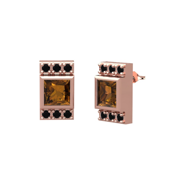 Dumanlı kuvars ve siyah zirkon 8 ayar rose altın küpe