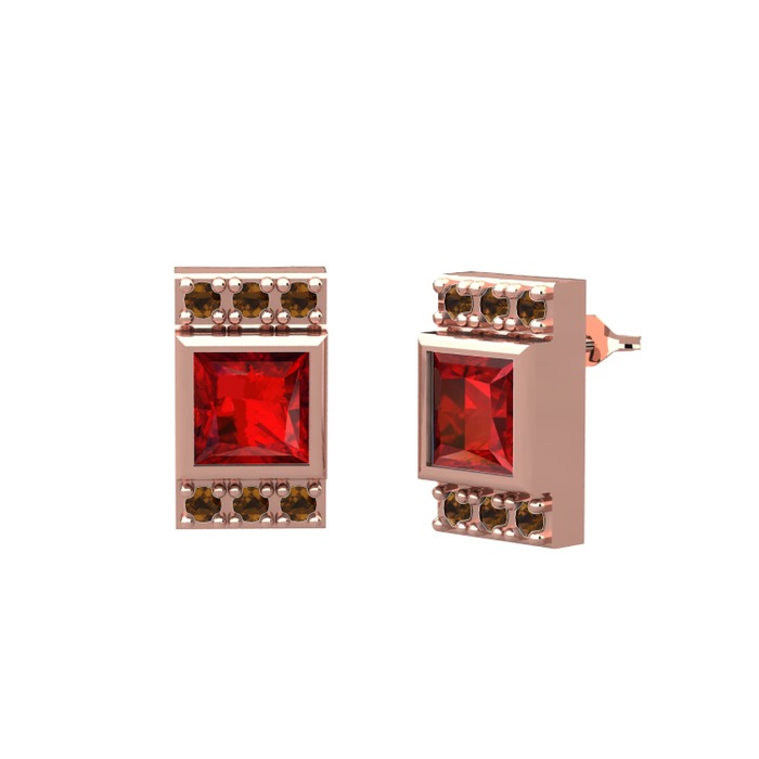 Garnet ve dumanlı kuvars 14 ayar rose altın küpe