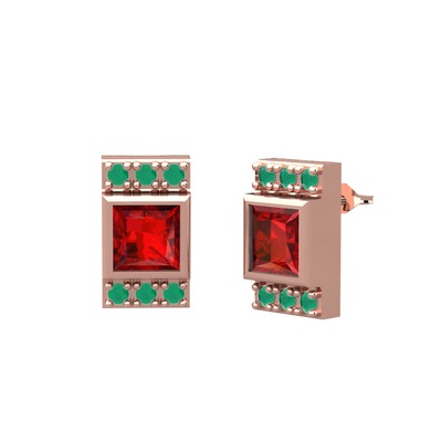 Garnet ve kök zümrüt 925 ayar rose altın kaplama gümüş küpe