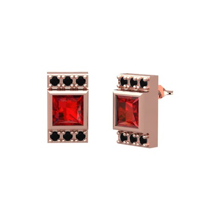 Garnet ve siyah zirkon 925 ayar rose altın kaplama gümüş küpe
