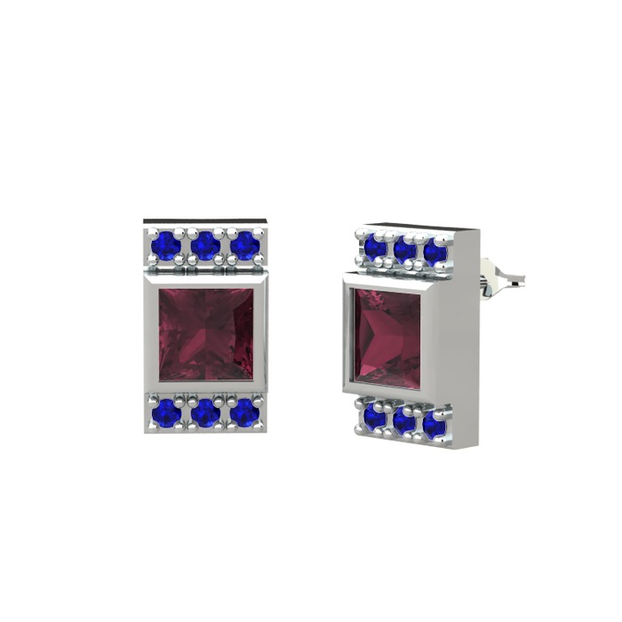 Kök yakut ve lab safir 8 ayar beyaz altın küpe