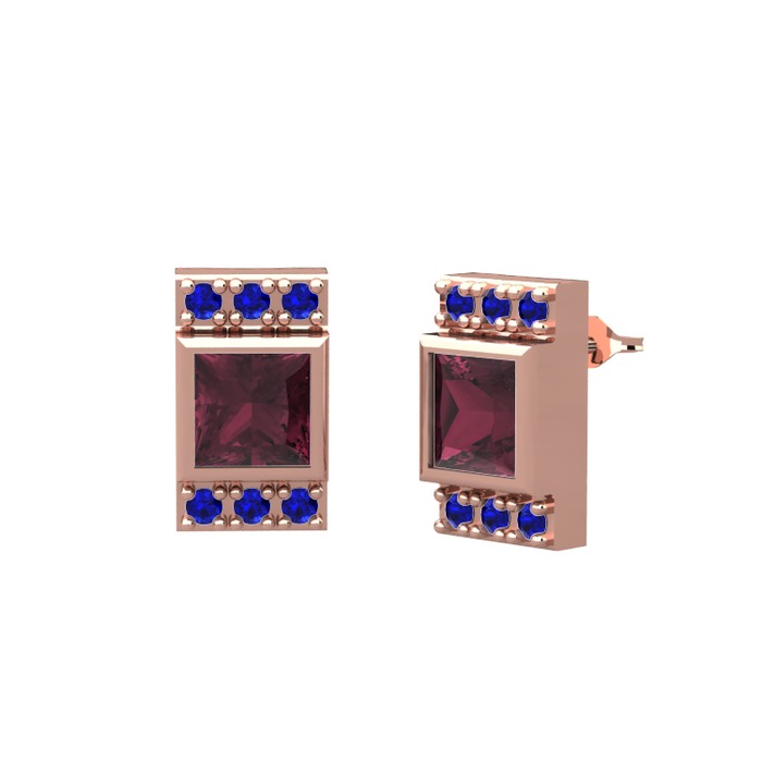 Kök yakut ve lab safir 8 ayar rose altın küpe