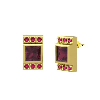 Kök yakut ve rodolit garnet 8 ayar altın küpe