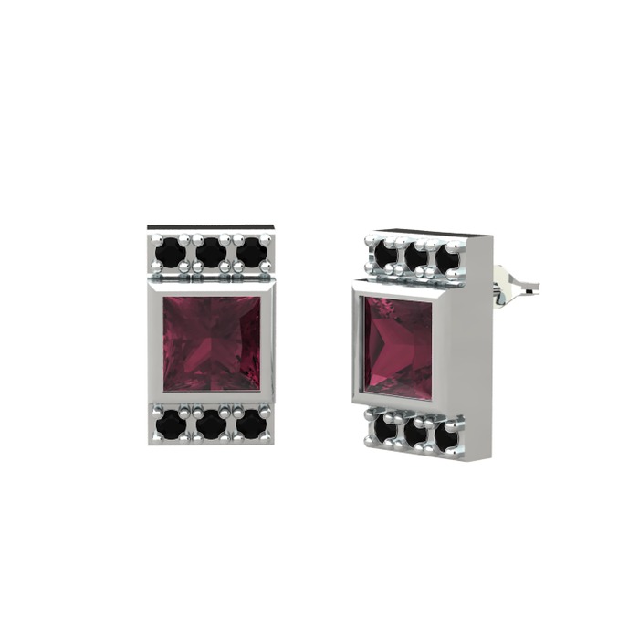 Kök yakut ve siyah zirkon 14 ayar beyaz altın küpe