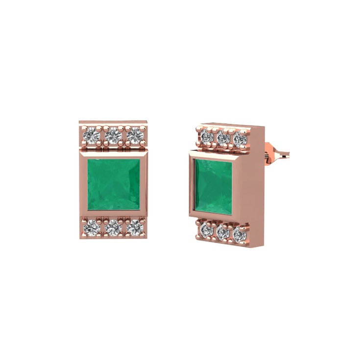 Kök zümrüt ve beyaz zirkon 925 ayar rose altın kaplama gümüş küpe
