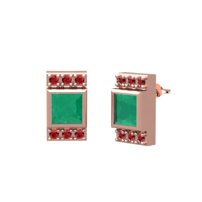 Kök zümrüt ve garnet 8 ayar rose altın küpe