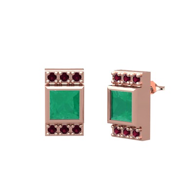 Kök zümrüt ve kök yakut 925 ayar rose altın kaplama gümüş küpe