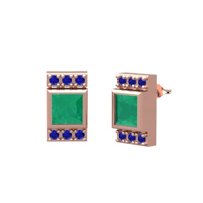 Kök zümrüt ve lab safir 925 ayar rose altın kaplama gümüş küpe