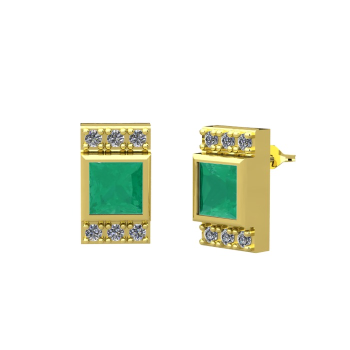 Kök zümrüt ve pırlanta 925 ayar altın kaplama gümüş küpe (0.132 karat)