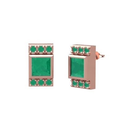 Kök zümrüt 925 ayar rose altın kaplama gümüş küpe