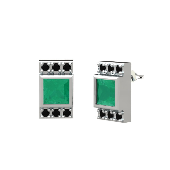 Kök zümrüt ve siyah zirkon 14 ayar beyaz altın küpe
