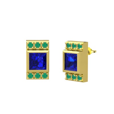 Lab safir ve kök zümrüt 18 ayar altın küpe