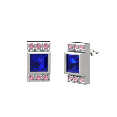 Lab safir ve pembe kuvars 8 ayar beyaz altın küpe