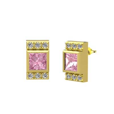 Pembe kuvars ve beyaz zirkon 18 ayar altın küpe