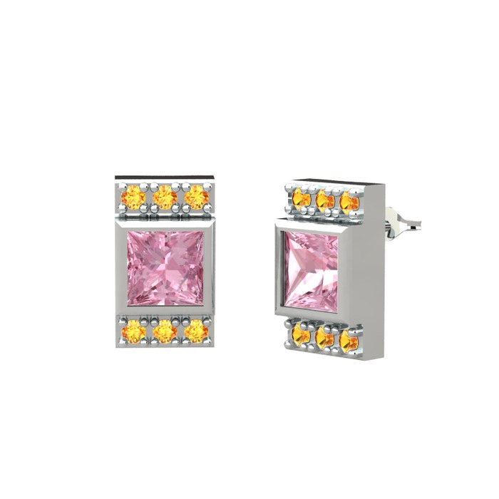 Pembe kuvars ve sitrin 14 ayar beyaz altın küpe