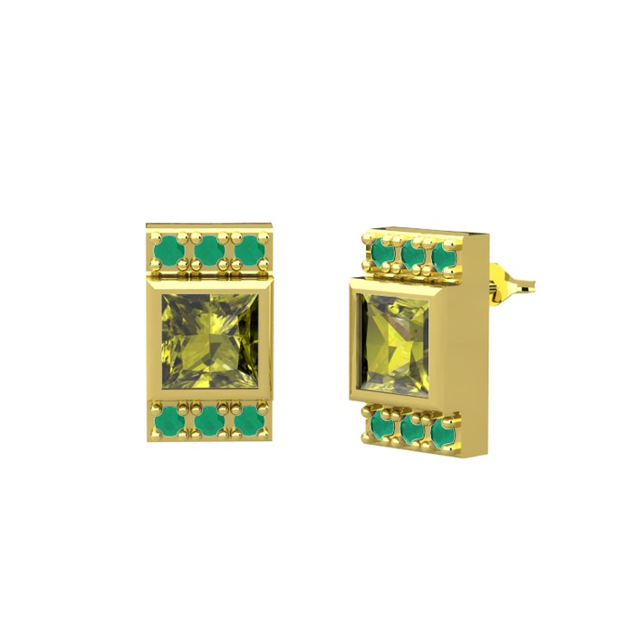 Peridot ve kök zümrüt 14 ayar altın küpe