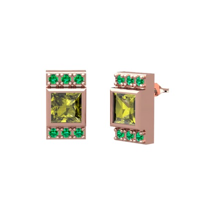 Peridot ve yeşil kuvars 8 ayar rose altın küpe