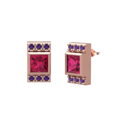 Rodolit garnet ve ametist 925 ayar rose altın kaplama gümüş küpe