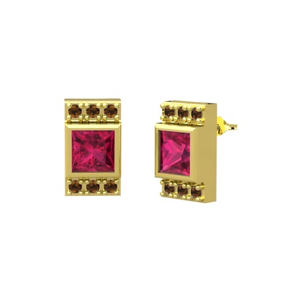 Rodolit garnet ve dumanlı kuvars 925 ayar altın kaplama gümüş küpe