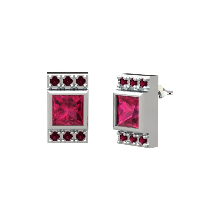 Rodolit garnet ve kök yakut 8 ayar beyaz altın küpe