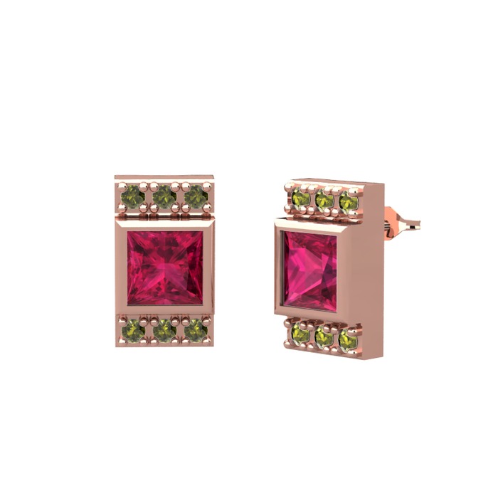 Rodolit garnet ve peridot 14 ayar rose altın küpe