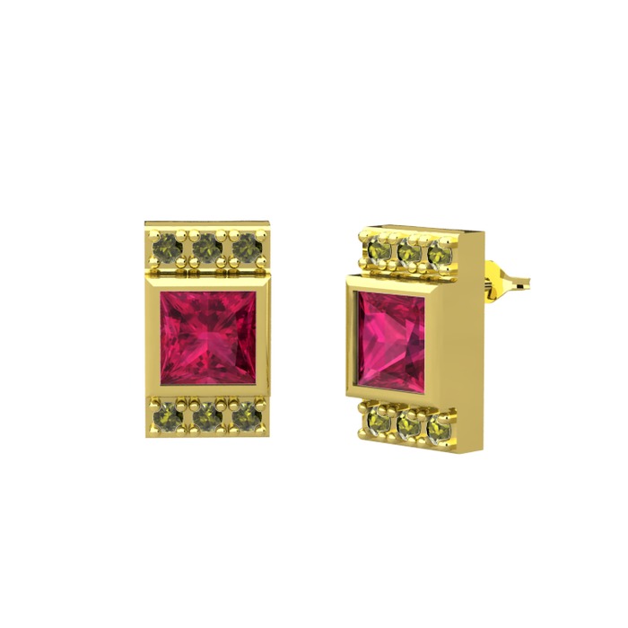 Rodolit garnet ve peridot 925 ayar altın kaplama gümüş küpe