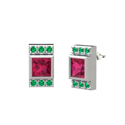 Rodolit garnet ve yeşil kuvars 18 ayar beyaz altın küpe