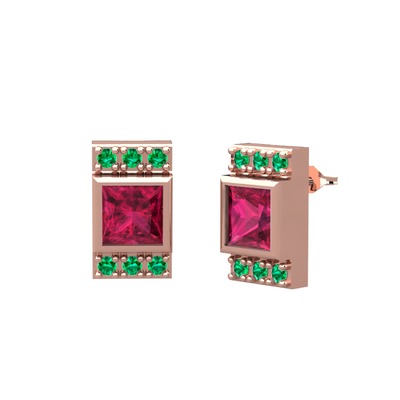 Rodolit garnet ve yeşil kuvars 18 ayar rose altın küpe