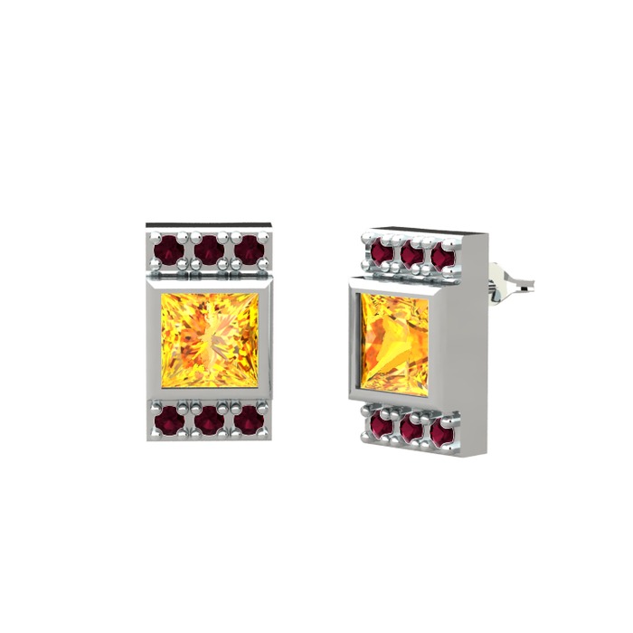 Sitrin ve kök yakut 925 ayar gümüş küpe