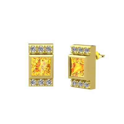 Sitrin ve swarovski 925 ayar altın kaplama gümüş küpe