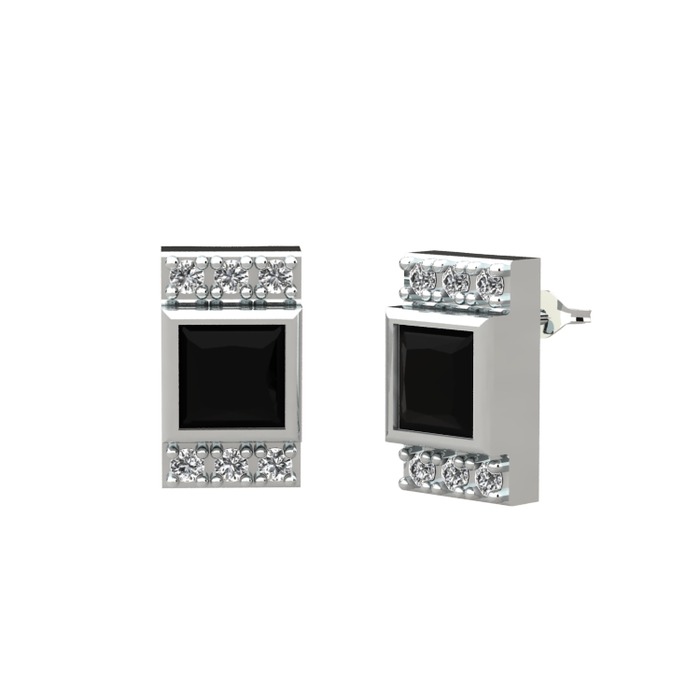 Siyah zirkon ve beyaz zirkon 18 ayar beyaz altın küpe