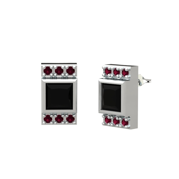 Siyah zirkon ve kök yakut 14 ayar beyaz altın küpe