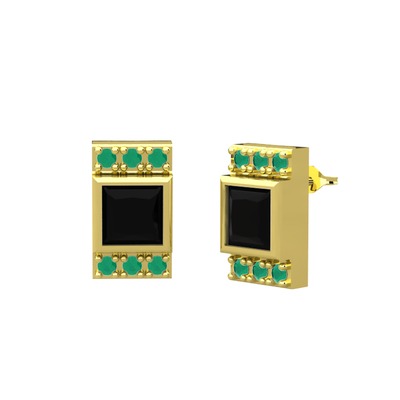 Siyah zirkon ve kök zümrüt 18 ayar altın küpe